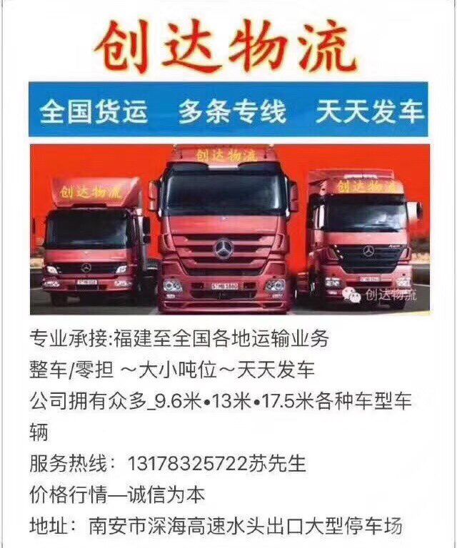 承接全國各地(整車零擔(dān))汽運業(yè)務(wù)。服務(wù)熱線:13178325722蘇。