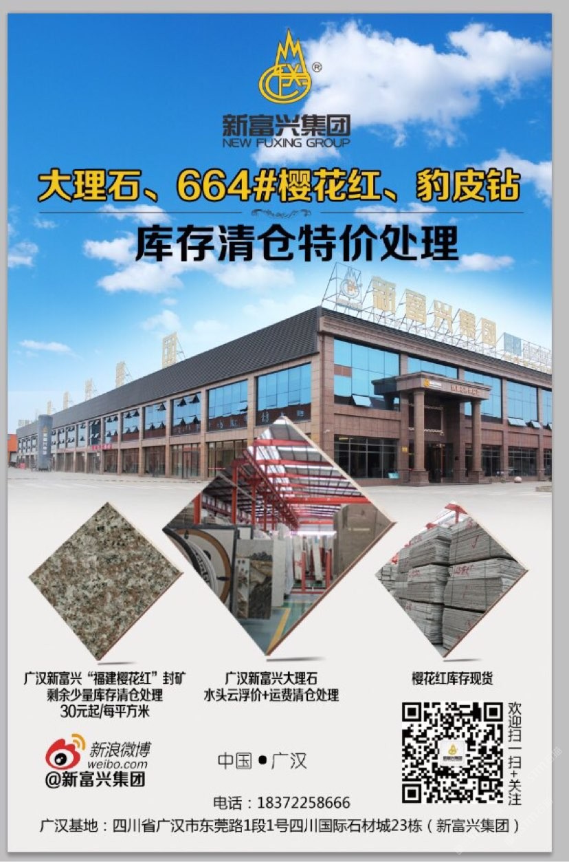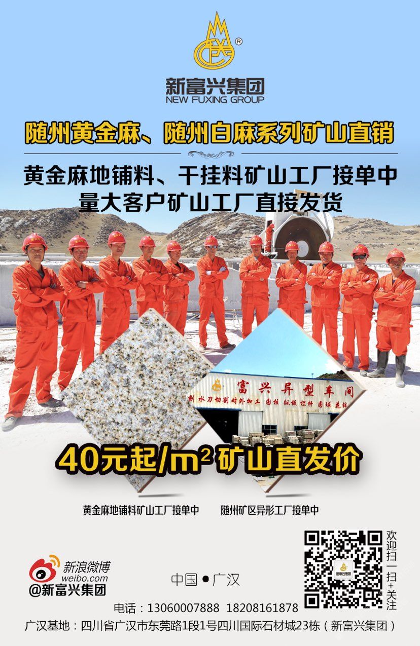 新富興集團(tuán)旗下礦業(yè)板塊國內(nèi)擁有6座大型礦山分別分布在福建、湖南、湖北、新疆等省市盛產(chǎn):664#羅源紅、隨州黃金麻、黃金鉆、卡基諾金、隨州白麻、新疆豹皮鉆、焉耆白麻、湖南芝麻灰等花崗巖;石材板塊分別在四川省以及新疆維吾爾自治區(qū);新疆擁有三家企業(yè)其中四川省范圍內(nèi)擁有3個大型石材加工基地;成都工廠位于成都沙西線主營:花崗巖工程建設(shè)用石材;2013年成立廣漢富興石業(yè)有限公司在四川廣漢市修建兩家工廠分別位于:四川省廣漢市東莞路一段1號四川國際石材城23棟和29棟;總占地面積55畝。成都工廠負(fù)責(zé)銷售自有礦山的石材產(chǎn)品以及其他品種進(jìn)口、國產(chǎn)花崗巖石材產(chǎn)品大量使用于市政工程、房地產(chǎn)以及大型公共設(shè)施;廣漢工廠除專業(yè)批發(fā)自有礦山:福建、湖北、湖南、四川、新疆等省市自有礦山石材產(chǎn)品外,大理石是新富興集團(tuán)四川地區(qū)石材產(chǎn)業(yè)的主力產(chǎn)品,早在1998年開始新富興集團(tuán)前身企業(yè)之一“成都市金牛區(qū)富興石材加工廠”就已經(jīng)成為西南地區(qū)的進(jìn)口大理石供應(yīng)商之一;現(xiàn)目前集團(tuán)規(guī)模不斷擴(kuò)大并在福建、湖南、湖北、四川、新疆等地區(qū)開發(fā)6座大型礦山并有著的礦山資源優(yōu)勢掌握了產(chǎn)品的源頭以及多年積攢的社會的人脈資源與管理團(tuán)隊(duì)擁有各種先進(jìn)的技術(shù)與設(shè)備;承接國內(nèi)外各種異形大理石、花崗石加工,廠區(qū)擁有先進(jìn)的水刀設(shè)備多臺擁有紅外線橋式切割設(shè)備數(shù)十臺,全自動電腦仿形設(shè)備數(shù)十臺,全自動線條磨邊流水線設(shè)備多臺,異形圓柱設(shè)備多臺,異形車床等眾多異形設(shè)備同時擁有熟練的技師配合優(yōu)秀的管理者及高效率的服務(wù)團(tuán)隊(duì)使得新富興集團(tuán)四川地區(qū)石材產(chǎn)業(yè)板塊一直處于當(dāng)?shù)匚恢茫瑸榧瘓F(tuán)業(yè)績做出杰出的貢獻(xiàn)。