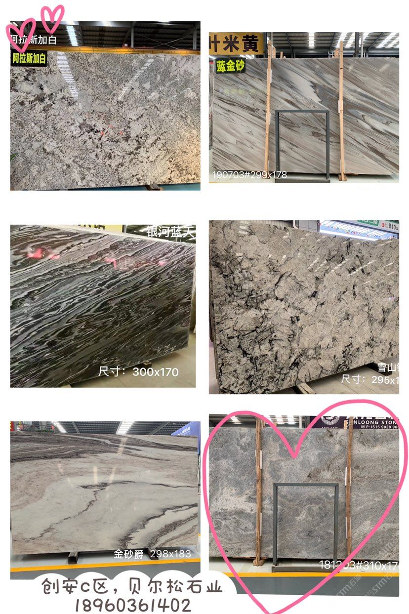 藍(lán)金沙、藍(lán)貝魯、紫色暢想 、夢幻棕、熱帶雨林、德國紅砂石英石荒料大板及工程板
