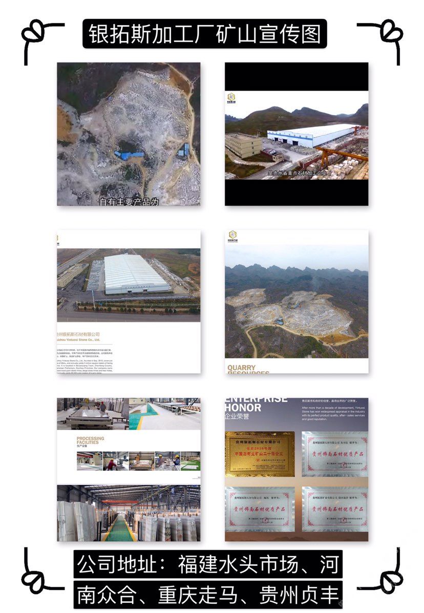 貴州銀拓斯石材有限公司成立于2012年9月,位于黔西南州貞豐縣北盤江鎮(zhèn),經營范圍為石材開采、加工、銷售,主要加工貴州木紋、米黃等系列產品。貴州銀拓斯石材有限公司占地面積65.74畝。引進國內外先進的石材生產工藝和加工設備,現(xiàn)已安裝科達靜壓鋸6臺、高效磨機1臺等設備,年產板材100萬平方米。公司自有木紋礦山兩處、米黃礦山兩處、新品礦山兩處,年產荒料5萬立方米。公司秉承“勵志創(chuàng)新、篤守誠信”的經營理念,立足于重實際、辦實事、見實效,把文化理念融入到生產建設和質量管理的各個環(huán)節(jié),致力于用文化提升領導力、執(zhí)行力和凝聚力,以文化促進生產力,以軟實力提升“銀拓斯”整體發(fā)展水平,為客戶提供“高效率、高品質、全方位”的服務,不斷提升產品品質,程度地滿足客戶的需求。\\\\\\\