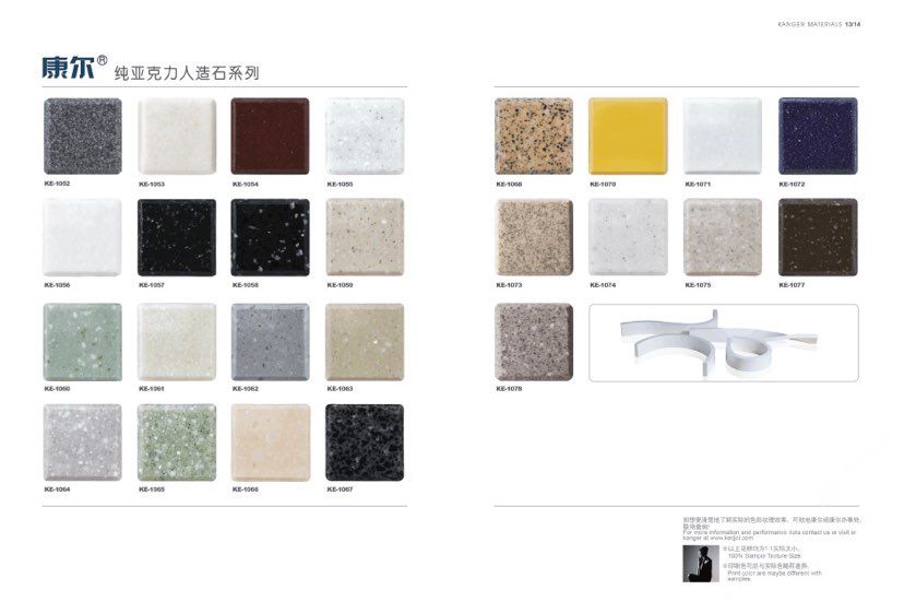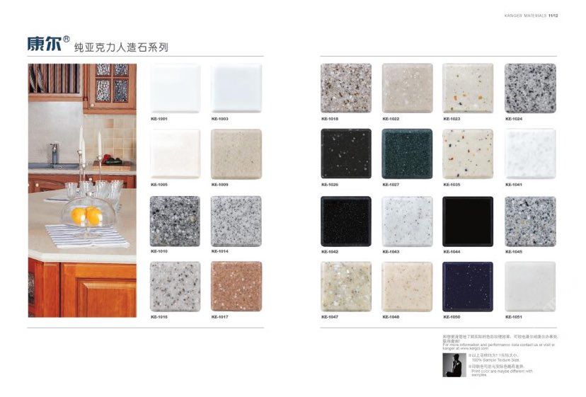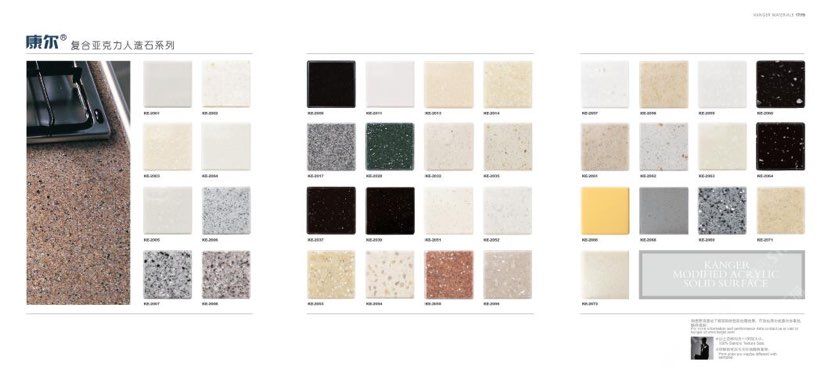 康爾人先后開(kāi)發(fā)出了色彩豐富的 100% 純亞克力系列,復(fù)合亞克力系列,不飽和樹(shù)脂系列,石英石、集成成品臺(tái)面和高分子復(fù)合材料門(mén)板系列。產(chǎn)品系列多樣、顏色豐富、品質(zhì)穩(wěn)定、已銷(xiāo)往世界幾十個(gè)國(guó)家,深受?chē)?guó)內(nèi)外客戶的好評(píng).
