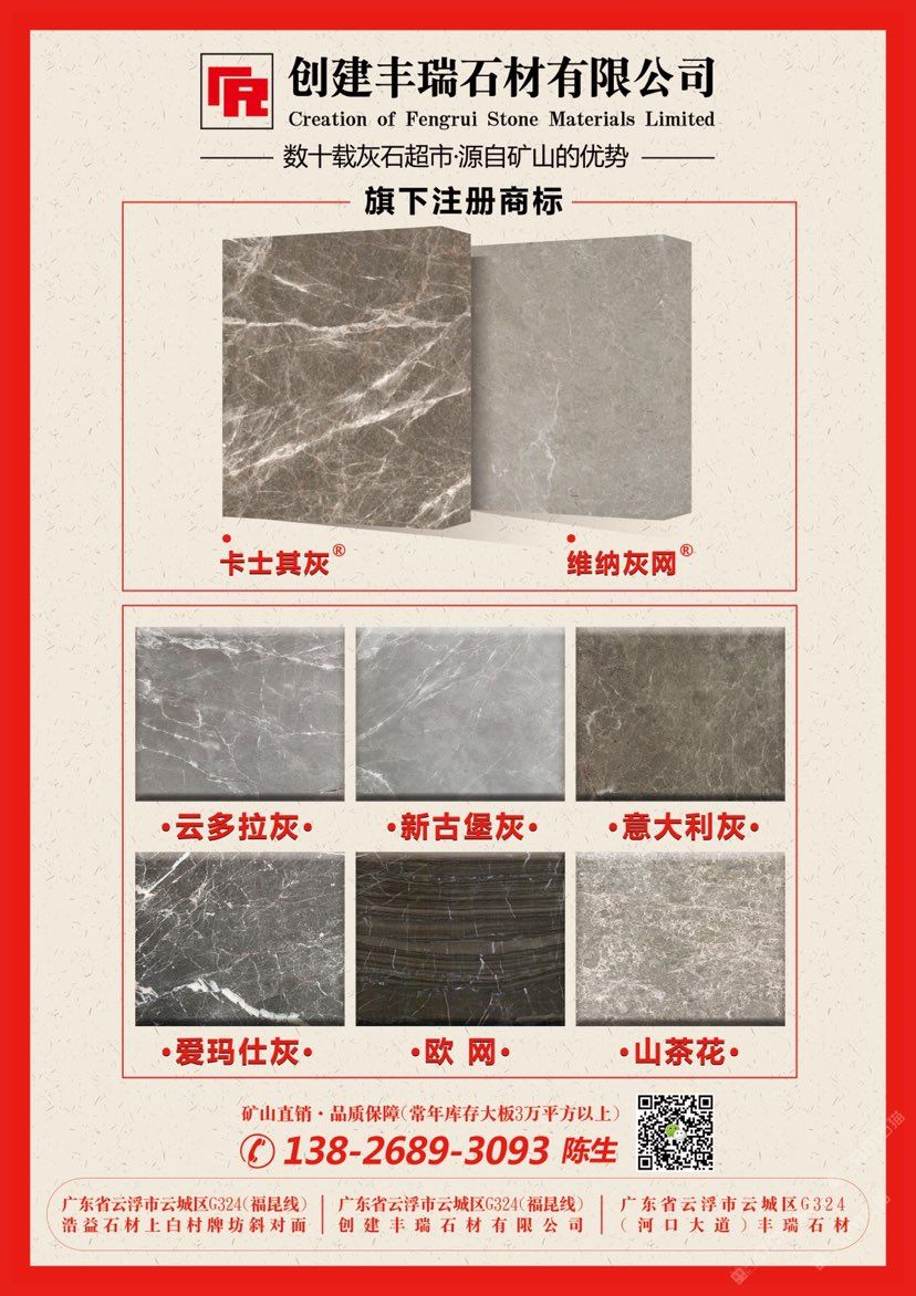數(shù)十載灰石專(zhuān)家,集世界灰石精品,精挑細(xì)選,服務(wù)全球!公司專(zhuān)業(yè)礦山開(kāi)采及代理,專(zhuān)利產(chǎn)品旗下注冊(cè)商標(biāo):卡士其灰、維納灰網(wǎng)。兼營(yíng)云多拉灰、新古堡灰、意大利灰、柏斯高灰…等。公司秉承專(zhuān)注、專(zhuān)業(yè)、專(zhuān)心的行業(yè)態(tài)度,誠(chéng)邀各界人士蒞臨洽談,合作共贏!聯(lián)系電話:13826893093陳生