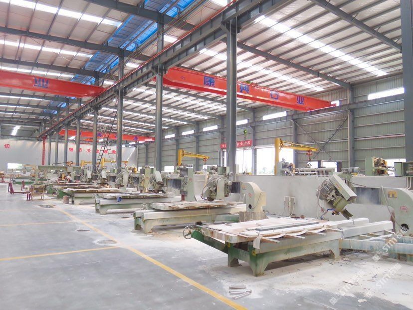 康典石業(yè)江蘇有限公司位于南通東升國際石材產(chǎn)業(yè)城內(nèi),購置土地50余畝,占地面積: 34366m,廠房面積23000m,各類石材加工先進設(shè)備80多臺(套),各類技術(shù)人員及安裝工人500余名??档涫瘶I(yè)是集石材國際貿(mào)易、一次荒料加工、二次精品加工以及一流施工安裝為一體的大型石材企業(yè)。\\\
