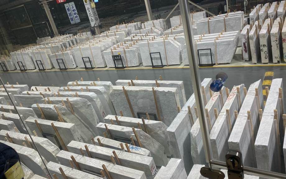 大量精品中花白、卡拉拉白、雪花白大板、荒料