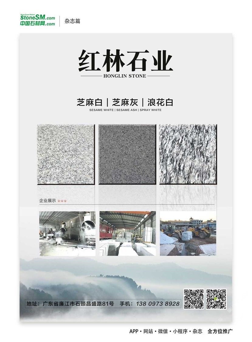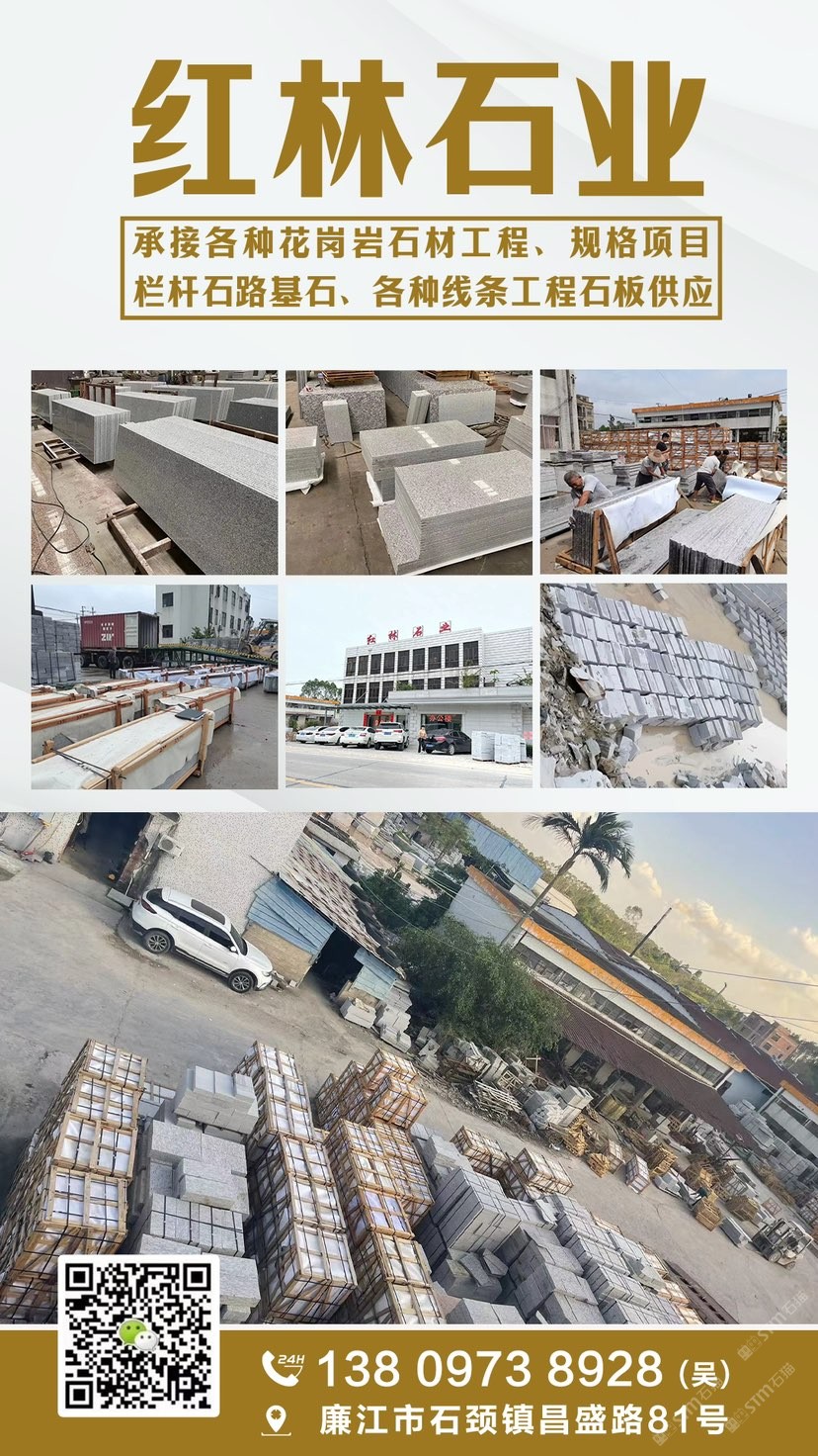 紅林石材廠位于廣東省廉江市石材工業(yè)園區(qū),擁用大型礦山資源,主要出產(chǎn)國內(nèi)知名品種如工:芝麻白、海浪花、芝麻灰,楓葉紅等花崗巖石材,我廠主要做各種規(guī)格臺(tái)板、地板磚、荒料石、石材加工、風(fēng)景石、園林石、觀賞石、招牌石、門牌石、陽臺(tái)花瓶、欄桿、風(fēng)水球、石桌石凳等工藝加工及別墅精裝設(shè)計(jì)。另外可根據(jù)用戶需要進(jìn)行各種異形材加工,產(chǎn)品銷往全國各地。本廠具有長期加工經(jīng)驗(yàn),質(zhì)量可靠。公司秉承“以誠信為根本,以質(zhì)量為生存”的經(jīng)營理念,堅(jiān)持“客戶、互惠互利”的原則為廣大客戶提供優(yōu)質(zhì)的服務(wù)。歡迎廣大的新老用戶,前來洽談合作!