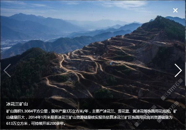 位于四川省攀枝花市米易縣,本公司專業(yè)做花崗石礦山開(kāi)采、花崗石板材生產(chǎn)及銷(xiāo)售。與廈門(mén)萬(wàn)里石股份有限公司合作開(kāi)采“冰花藍(lán)”寨子山礦山,與高時(shí)石材米易愉天礦業(yè)合作開(kāi)采“冰花藍(lán)”石板溝礦山,并自有“豹皮花”礦山和米易東成礦業(yè)。年產(chǎn)花崗石荒料3萬(wàn)立方,在米易長(zhǎng)坡工業(yè)園區(qū)控股三個(gè)工廠合計(jì)面積120余畝。年產(chǎn)花崗石板材80萬(wàn)平米。旗下主要產(chǎn)品:“冰花藍(lán)”、“豹皮花”、“芝麻黑”、“芝麻灰”。產(chǎn)品主要用于大樓外墻干掛、廣場(chǎng)地鋪、路緣石、墓碑石、景觀園林用石等。