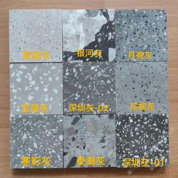 玫瑰灰、杭灰、深圳灰、黃洞石、白洞石、灰洞、白森林、利仕特米黃、名牌灰、米黃鉆、深灰、珍珠白、雪花中青、藍色妖姬、珍珠黑、寒影灰、中東黃灰、漢白玉、啡鉆、泰瀚黑、灰森林、羅馬灰、淺灰、黑色水磨石、富士白、白姑娘、吉爾灰、金點綠、吉爾米黃、夏日灰、金碧輝煌、亞朵白、粉鉆星1號、灰、月亮灰、象牙白、白玉蘭、宇宙白、皇室灰、黃晶鉆\
