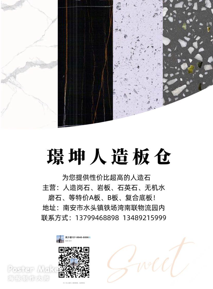 主營:人造崗石、石英石、巖板、無機水磨石