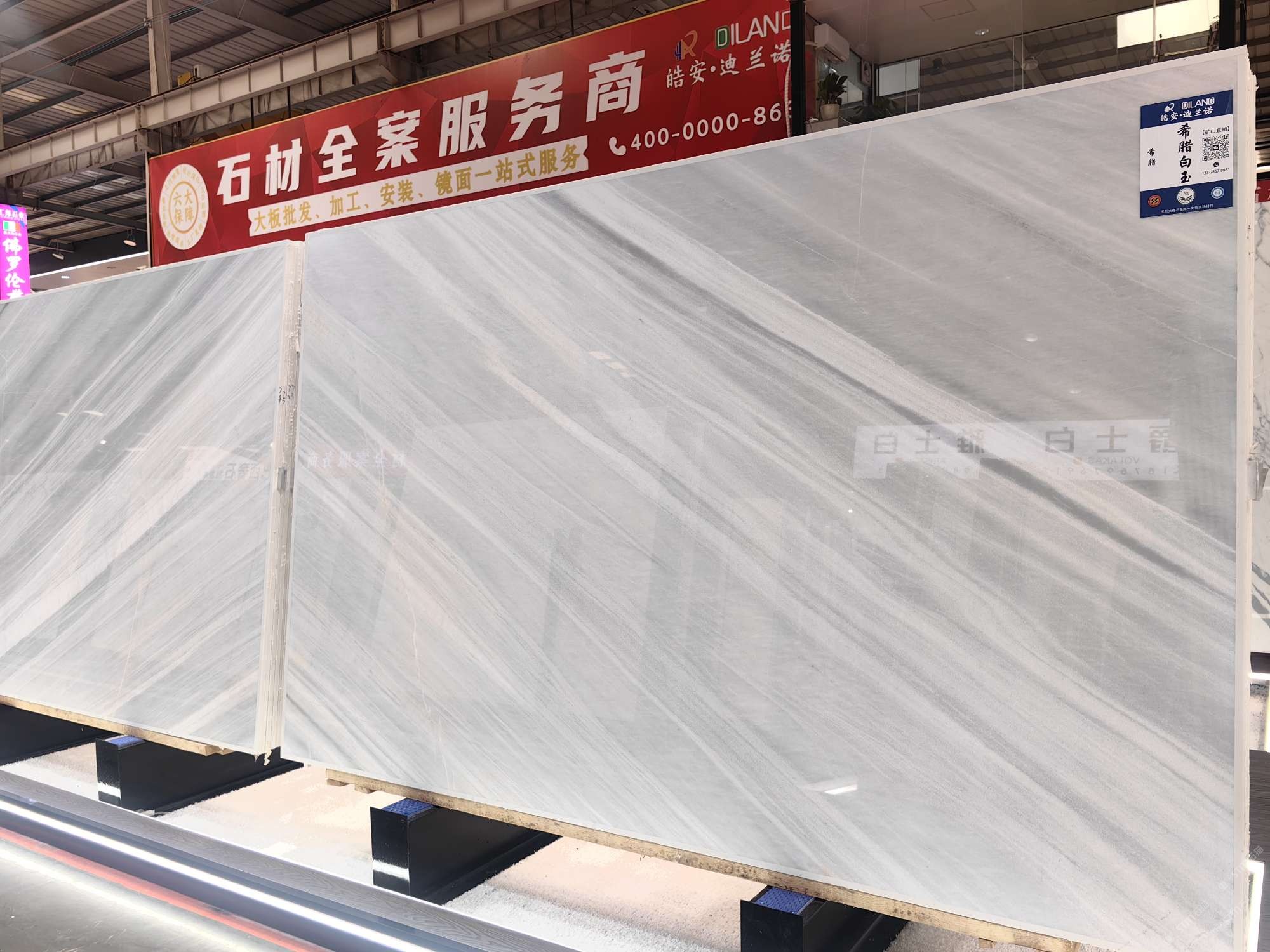 中國福建泉州水頭鎮(zhèn)澳盛大板市5A棟4區(qū)皓安-迪蘭諾輕奢石材全案服務商選材中心。