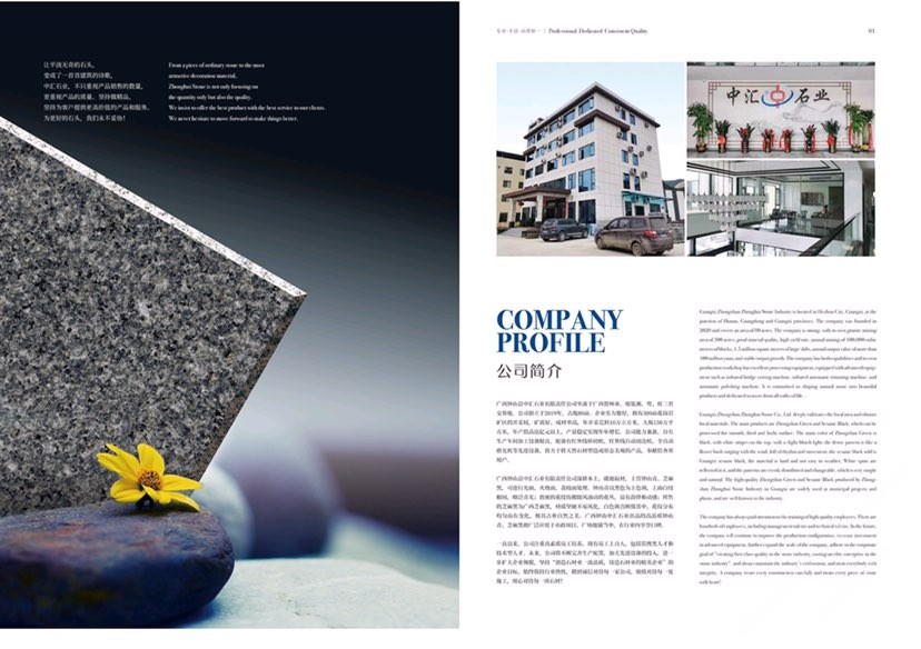 鐘山縣中匯石業(yè)有限責(zé)任公司坐落于廣西壯族自治區(qū)賀州市,地處湘、粵、桂三省交界地。公司創(chuàng)立于2019年,占地面積80余畝。企業(yè)實力雄厚,擁有300畝花崗巖礦區(qū)的開采權(quán),礦質(zhì)好、成材率高,年開采荒料10萬立方米,大板150萬平方米,年產(chǎn)值高達(dá)億元,產(chǎn)量穩(wěn)定實現(xiàn)連年增長。公司才能兼?zhèn)?,自有生產(chǎn)車間,加工設(shè)備精良。配備有紅外線橋切機(jī)、紅外線自動切邊機(jī)、全自動磨光機(jī)、定厚機(jī)、仿形機(jī)、雕刻機(jī)等先進(jìn)設(shè)備,致力于將天然石材塑造成形態(tài)美觀的產(chǎn)品,奉獻(xiàn)給社會各界用戶。