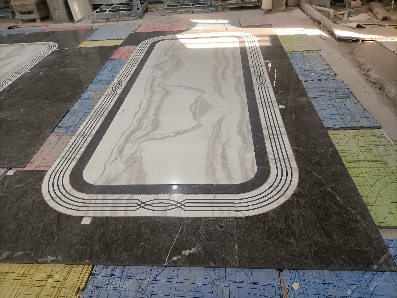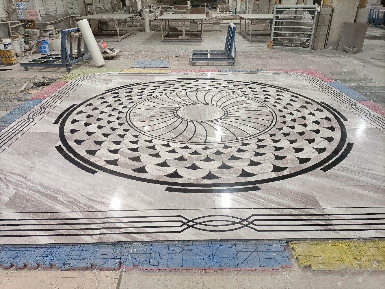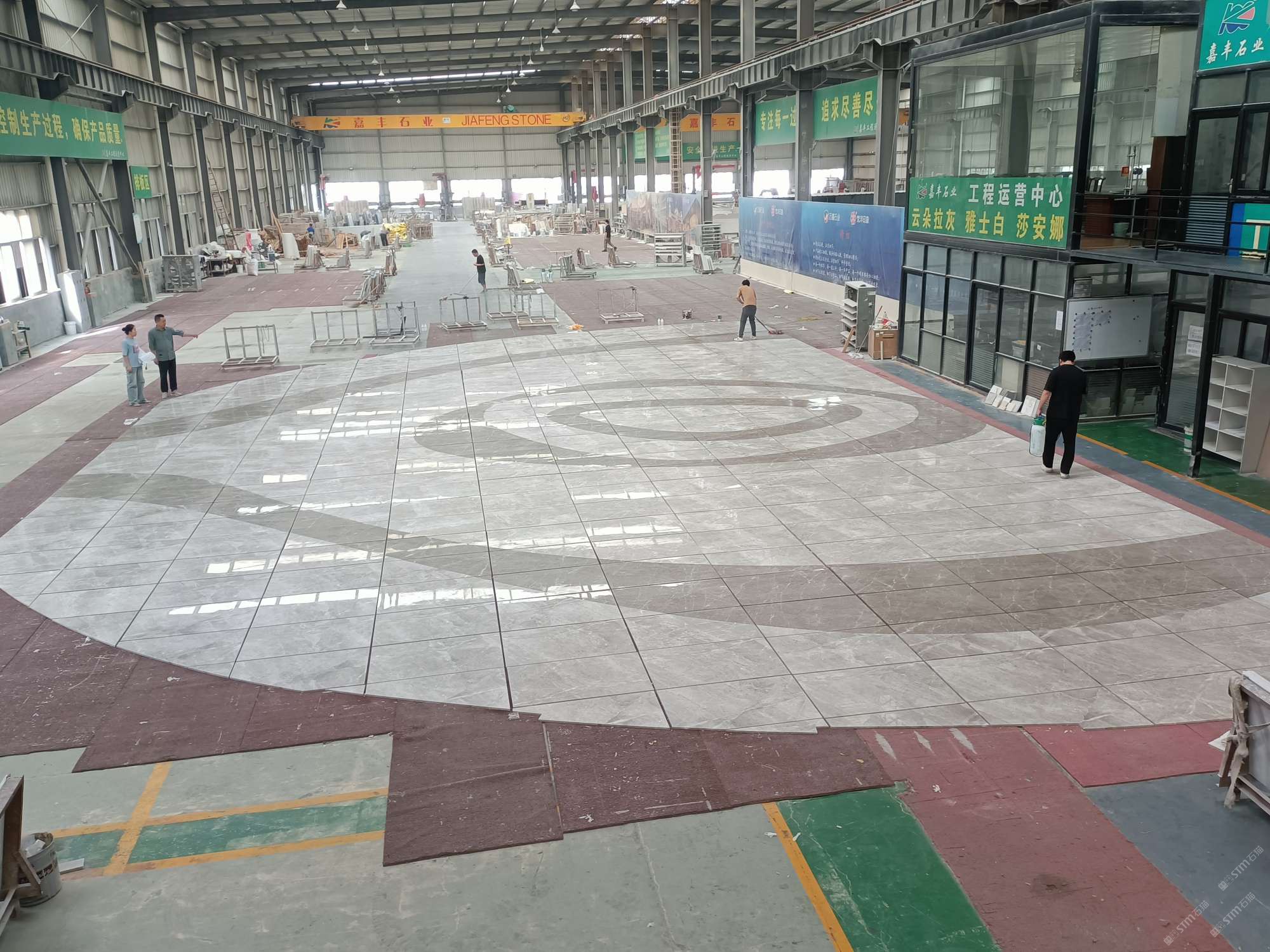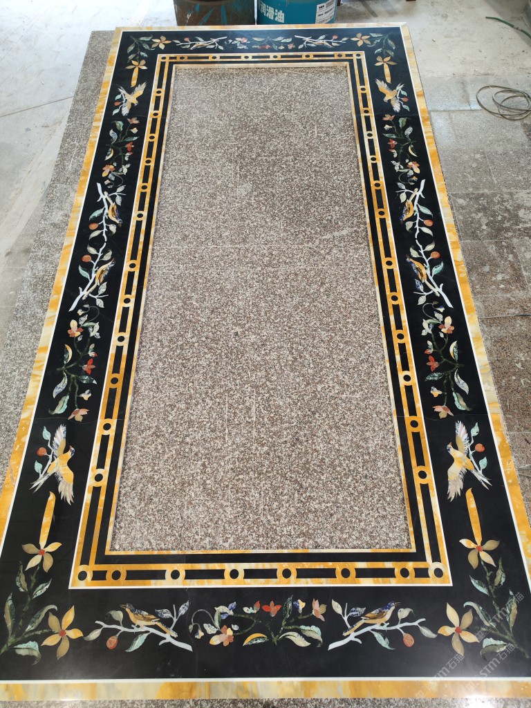 熊大水刀拼花,集石材水刀拼花(拼花鑲嵌貝殼類/拼花鑲嵌銅板類/拼花鑲嵌鋼板類)、石材產(chǎn)品開發(fā)及工藝設計生產(chǎn)等為一體的頗具規(guī)模的企業(yè)。公司設有石材工藝展廳、位于福建省泉州市南安市水頭鎮(zhèn)蟠龍工業(yè)區(qū)嘉豐二廠工程運營中心,擁有兩個大型石材加工廠,設有水刀拼花生產(chǎn)線,自動水磨石加工生產(chǎn)線。