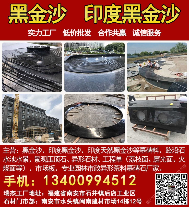 發(fā)布信息: 黑金沙水景工廠-瑞杰黑金沙林總13400994512主營:黑金沙、印度黑金沙、印度天然黑金沙、印度黑色石材、等墓碑料、路沿石、水池水景、景觀壓頂石、異形石材、工程單(荔枝面、磨光面、火燒面等)、市場板、專業(yè)園林市政異形荒料墓碑石廠家,實力工廠、低價批發(fā)、合作共贏、誠信服務(wù). 工廠地址:福建省南安市石井鎮(zhèn)后店工業(yè)區(qū),門市部:南安市水頭鎮(zhèn)閩南建材市場