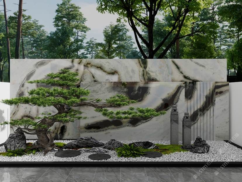 大頭奢石館|熊貓白|水墨印象|水墨江南