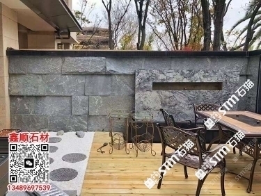 芝麻黑自然面背景墻流水石水景石材流水幕墻石皮背景墻
