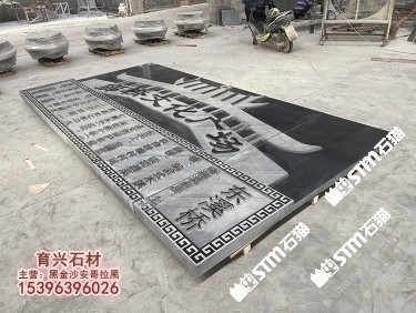 印度黑金沙花崗巖族譜牌匾匾額雕刻刻字藝術浮雕定制
