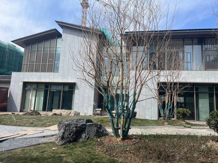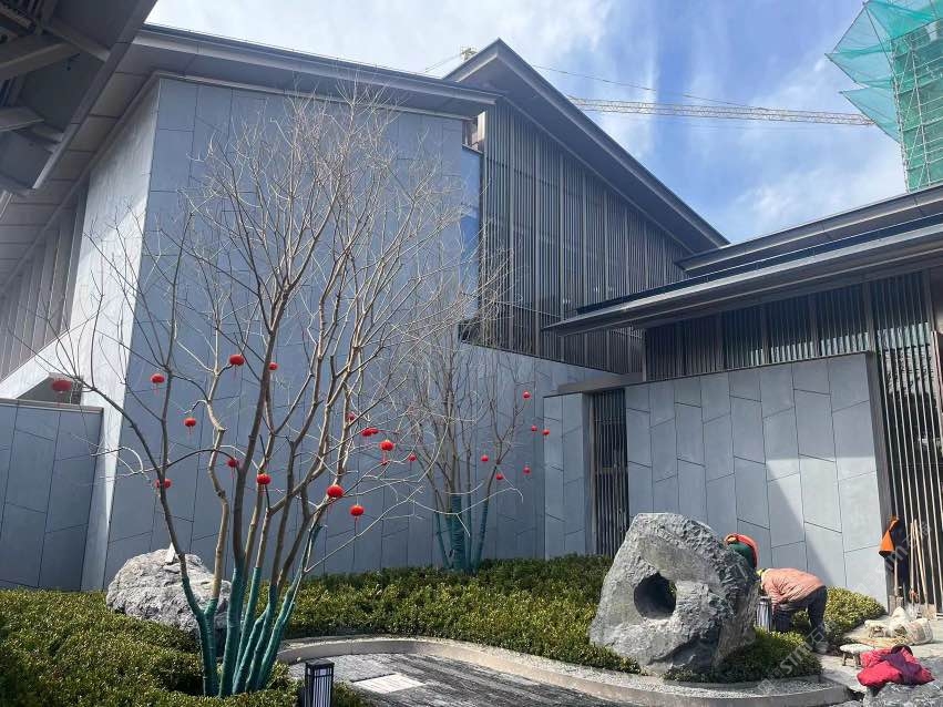 無機(jī)灰洞石,啟東城投大雅風(fēng)華售樓處外墻應(yīng)用案例