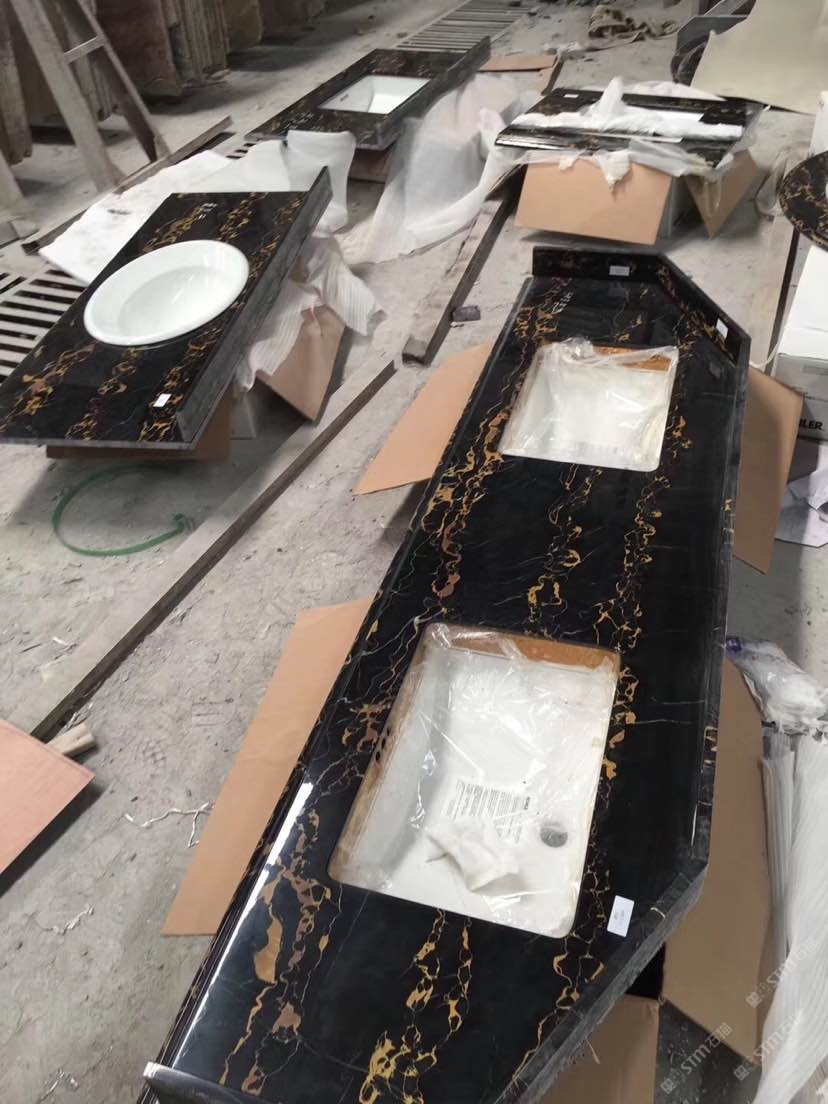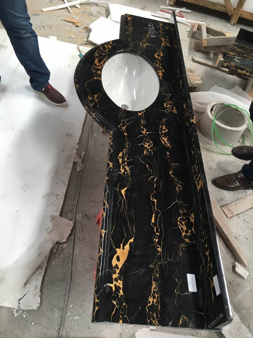 意大利黑金花洗手臺 上下盆