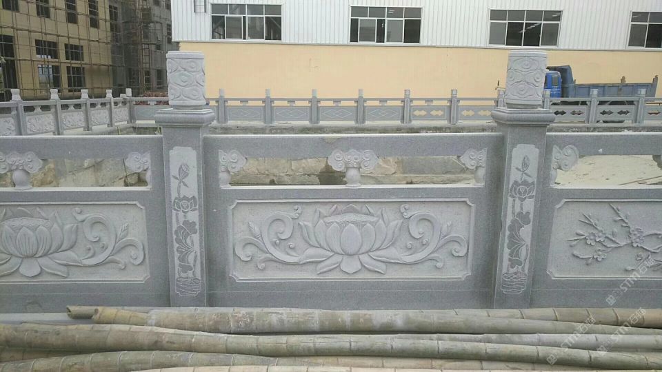花崗巖芝麻灰芝麻白浮雕蓮花攔桿