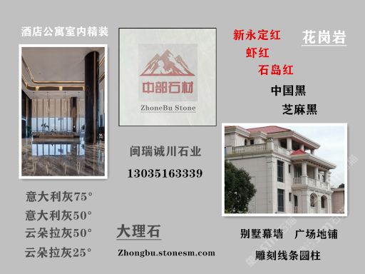發(fā)布信息: 中部石材擁有自己礦山與板材異形工廠,可承接別墅幕墻、線(xiàn)條雕刻圓柱、廣場(chǎng)地鋪訂單,歡迎詢(xún)價(jià)下單。