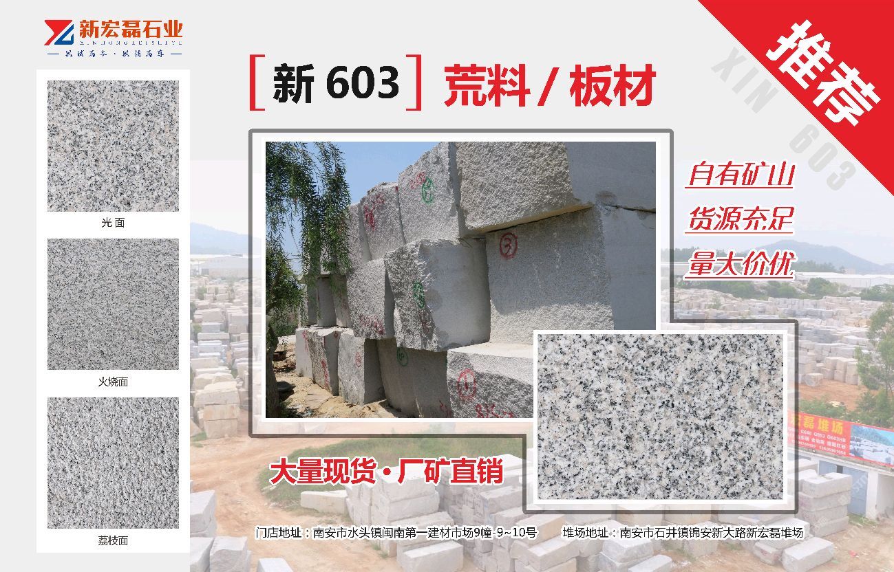 發(fā)布信息: 【新603】 荒料/板材 廠礦直銷,貨源穩(wěn)定量大價優(yōu),歡迎咨詢選購,聯(lián)系人 15005075070陳 13799979778朱