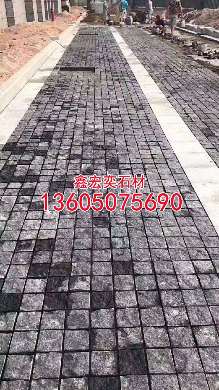 蒙古黑石材小方塊蒙古黑馬蹄石彈石黑色花崗巖地鋪石