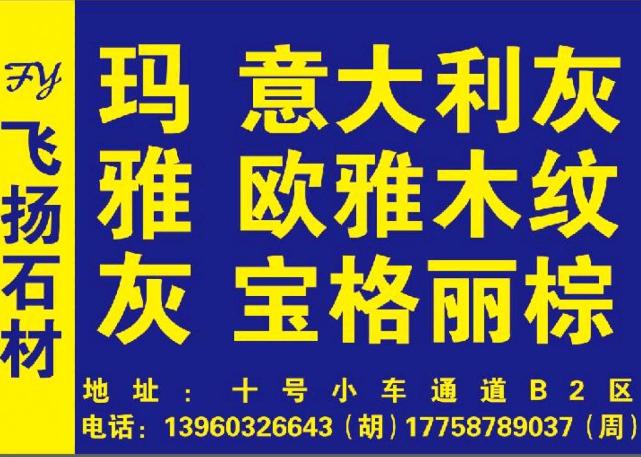 飛揚(yáng)石業(yè) 聯(lián)系人:胡先生    139****6643 查看 139****6643 查看 主營(yíng)范圍: 大板批發(fā)、 企業(yè)地址:福建泉州南安市水頭鎮(zhèn)新澳順5A通道B2區(qū)