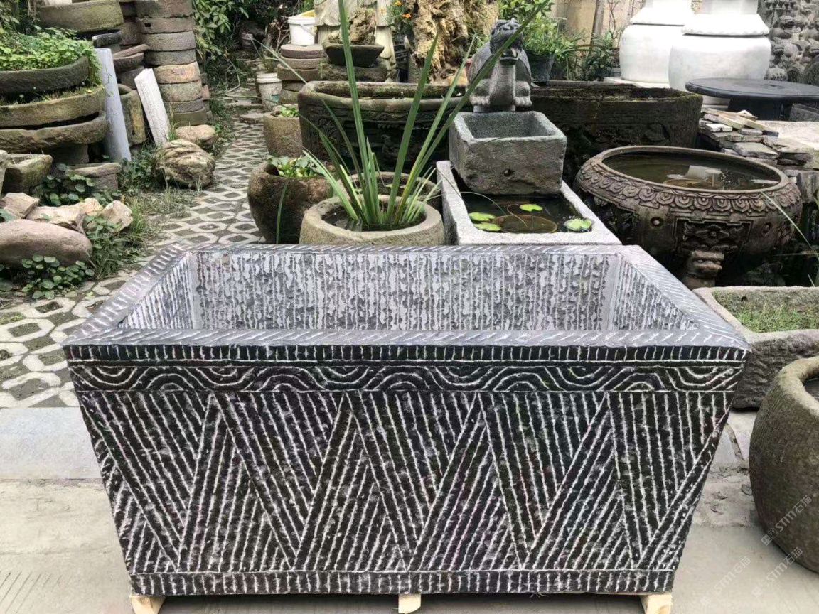 仿古青石魚缸聚寶盆,青石仿古石雕