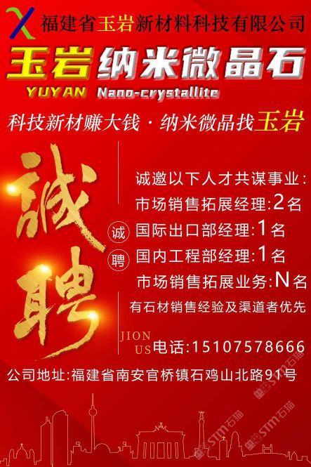 發(fā)布信息: 福建省玉巖新材料科技有限公司 科技新材賺大錢?納米微晶找“玉巖” 企業(yè)文化: 愿景: 融納米微晶石 塑匠心玉巖魂 使命: 推動環(huán)保建材 共建美好未來 價值觀: 感恩奉獻,成人達己, 科技創(chuàng)新,精益求精。