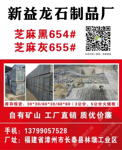 發(fā)布信息: 長(zhǎng)泰縣新益龍石制品廠位于“中國(guó)石材g654石材生產(chǎn)基地”——福建省漳州市長(zhǎng)泰縣林墩工業(yè)區(qū)。本廠集礦山開采, 石材加工,工程訂單及進(jìn)出口貿(mào)易于一體;擁有成套先進(jìn)的石材設(shè)備,掌握先進(jìn)的石材加工技術(shù),嚴(yán)格 控制每道生產(chǎn)工序,努力做到以的生產(chǎn)成本生產(chǎn)出能夠讓客戶滿意的產(chǎn)品,且供貨及時(shí),價(jià)格優(yōu)惠 ,能承接大數(shù)量的定單。經(jīng)過幾年發(fā)展,本廠擁有g(shù)654礦山,專業(yè)生產(chǎn)、加工國(guó)內(nèi)外花崗巖板材。 主營(yíng):芝麻黑g654 兼營(yíng):芝麻灰g655、芝麻白g623、灰麻g688、黃銹石g682等花崗巖品種板材及各種異形;加工方式多樣化:磨光板、毛板、厚板 、薄板、規(guī)格板、火燒板、地鋪石、小方塊、自然板、拉絲板、洗衣板、染板、菠蘿面、機(jī)切板、大板 、荔枝面、路沿石、臺(tái)面板、拋光板、線條、盲人石、滾石及各種建筑工程配套用石的生產(chǎn)、加工和銷 售。產(chǎn)品不僅暢銷國(guó)內(nèi)各大城市,還遠(yuǎn)銷到美國(guó),加拿大,英國(guó),韓國(guó),香港,臺(tái)灣等國(guó)家和地區(qū)。 新益龍石業(yè)以“質(zhì)量為本、服務(wù)至上、信譽(yù),客戶”為經(jīng)營(yíng)理念,真誠(chéng)期待著與您合作,攜手共 創(chuàng)雙贏,共享石材業(yè)輝煌明天。竭誠(chéng)歡迎國(guó)內(nèi)外廣大朋友來人來函洽談業(yè)務(wù),相互合作,共同發(fā)展! 洽談熱線:13799057528(連)