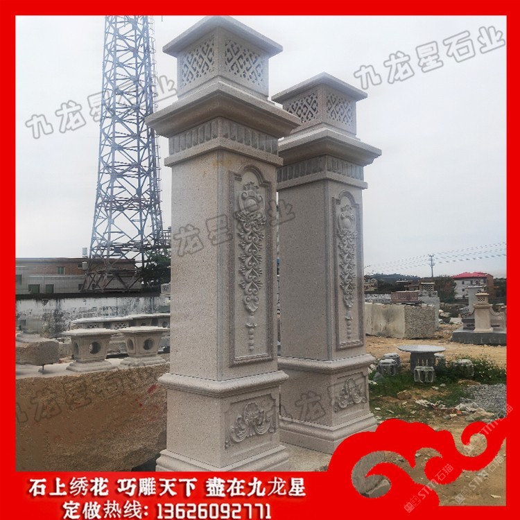 發(fā)布信息: 院子大門石柱價格 石材大門門柱造型圖片——九龍星石業(yè)。 ? ??石材大門門柱造型圖片的形態(tài)與構(gòu)成中國柱式的斗栱從單層發(fā)展至多層,由較基本的四鋪作乃至發(fā)展到八鋪作,形成一種十分精巧獨特的構(gòu)造,外觀上給人復雜多變、神秘莫測的感覺。斗栱的構(gòu)件又都是一些較小的部件,如“枓”、“栱”、“昂”等。將這些較小的部件以榫卯形式搭接咬合,組成一組整體性的空間框架體系,使人嘆為觀止。 ? ??院子大門石柱在低層或多層建筑中,當層高較高時,室內(nèi)空間中會出現(xiàn)過分細長的柱子,使別墅圓柱子形態(tài)缺乏一定的張力,因此可采取相應(yīng)的裝飾設(shè)計方法從視覺上擴張柱子的橫向體量感。 ? ??院子大門石柱的直徑和高度主要取決于荒料的尺寸,較小直徑一般為100mm,較大直徑小于等于2000mm;不論是整體的、還是部分的圓柱,其單體高度一般小于5000mm,但也有一些高度超過5000mm的特殊圓柱。標準的別墅大門石材柱子包括柱礎(chǔ)、柱體和柱帽三個部分。