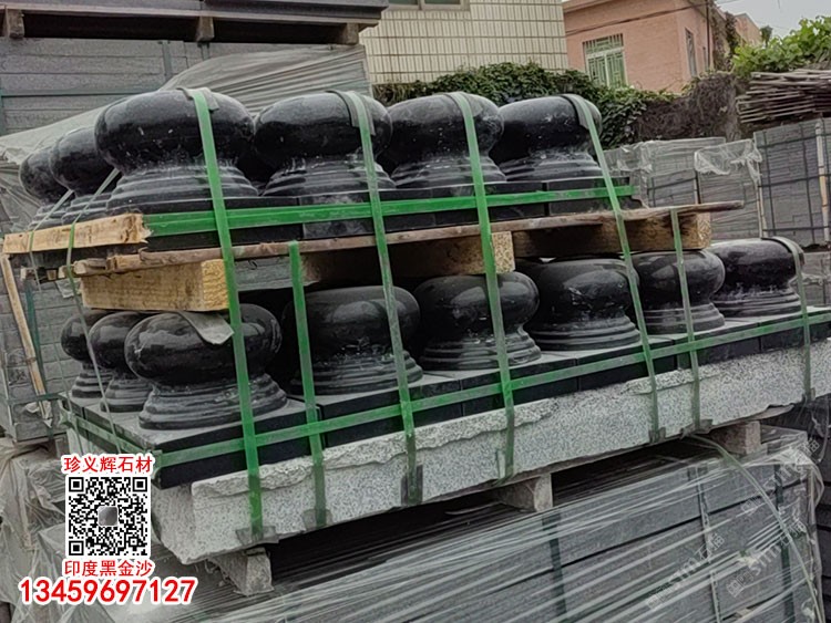 印度黑金沙墓碑欄桿石新礦黑金砂石雕墓碑套墓安哥拉黑