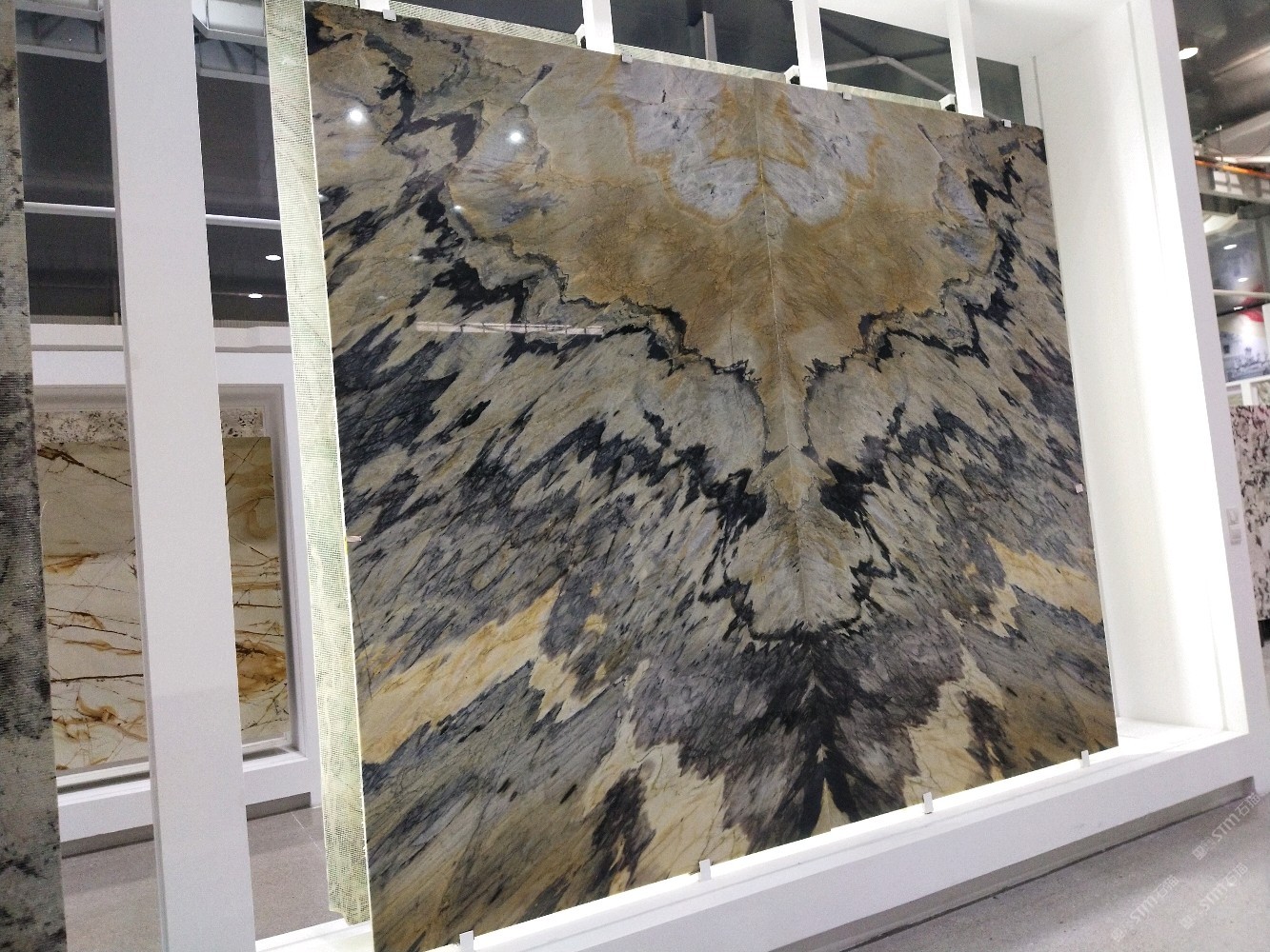 商圈 > 大理石 > 新正大奢石館[奢石品牌]金色火焰山水畫背景墻