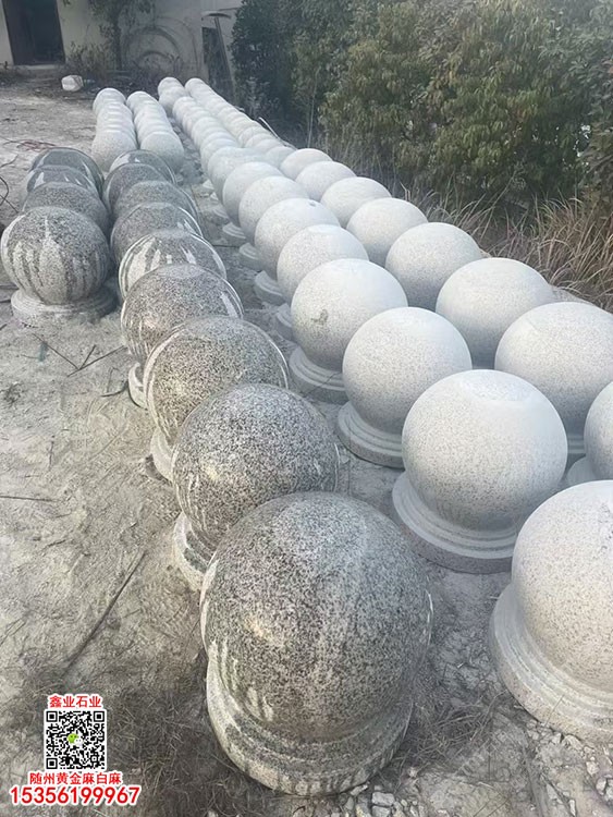湖北白麻擋車石球隨州白麻圓球路障石球石墩子黃金麻