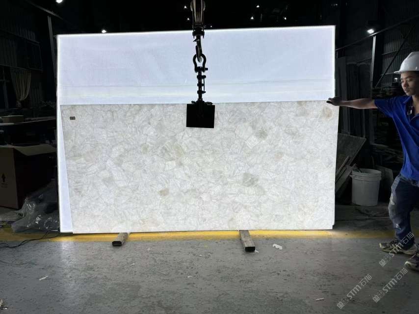 批發(fā)白水晶寶石板,天然透光石材,發(fā)光半寶石板材
