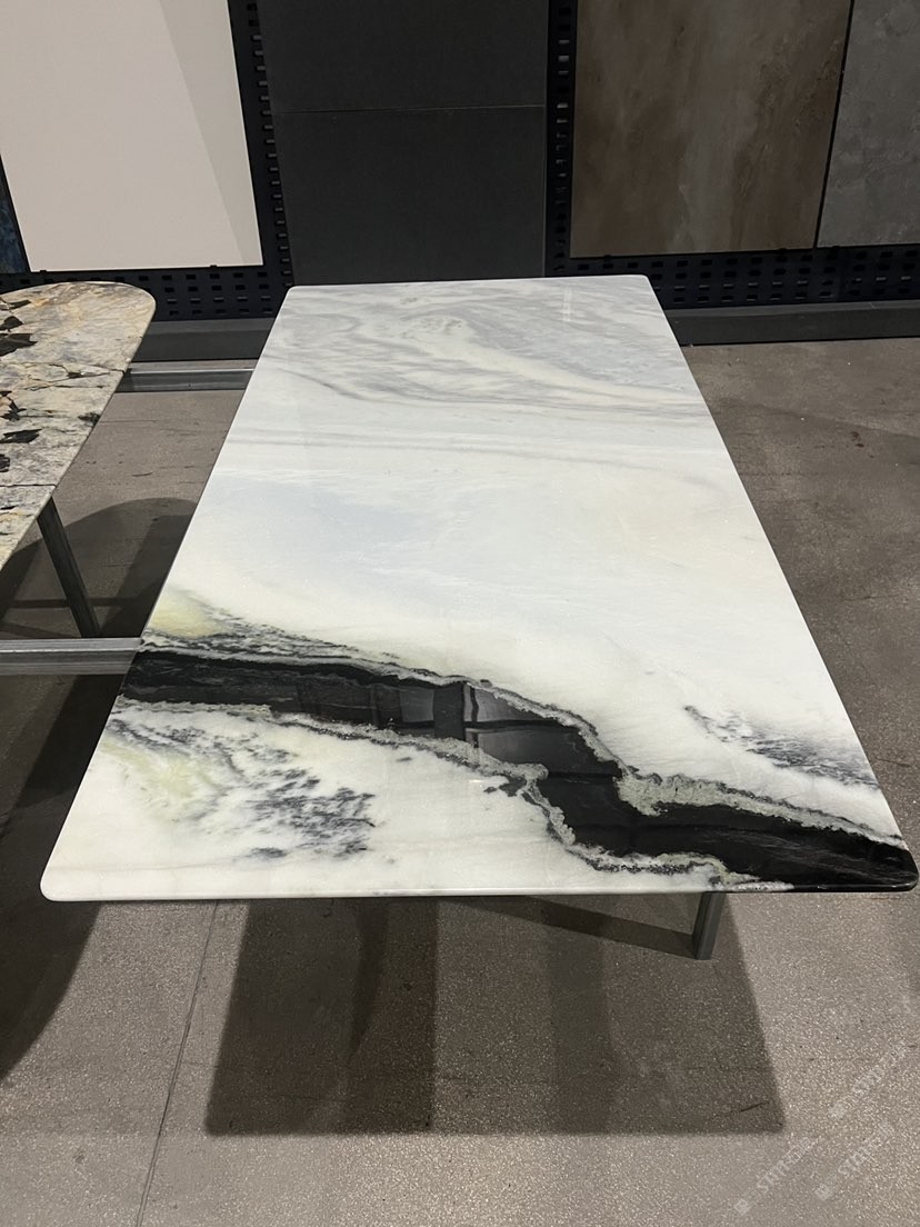 熊貓白奢石餐桌 天然水墨