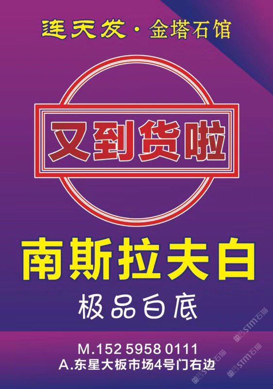 發(fā)布信息: 【連天發(fā)·金塔石館】 ?? 南斯拉夫白 ??繼續(xù)卸柜中?。?! 欲整票出售!或挑料定切!近期將有大量現(xiàn)貨新鮮出爐![憨笑] 卸于:大盈工業(yè)區(qū)匯鵬廠 熱線(xiàn):18314672560 楊