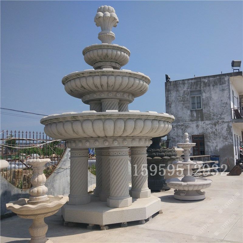 石雕黃繡石花崗巖噴泉現(xiàn)貨 出口芝麻白石頭石雕噴泉