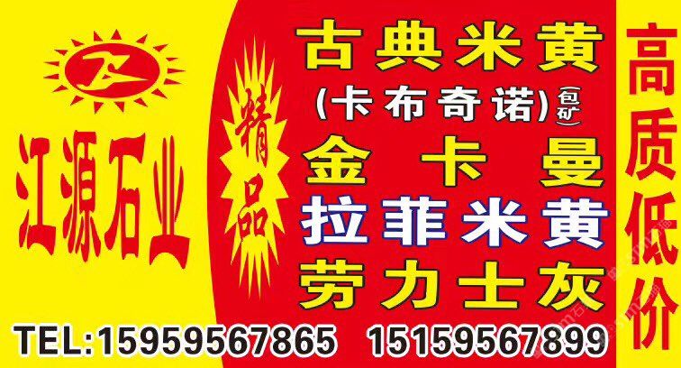 發(fā)布信息: 【江源石業(yè)】超大量 1??金卡曼 2??古典米黃&卡布奇諾 3??拉菲米黃&新莎安娜、 4??勞力士灰、5??西西里灰… 高質(zhì)低價(jià),全場(chǎng)8??8??元起?? 業(yè)務(wù)銷(xiāo)售點(diǎn)??: ??澳盛大板市場(chǎng)8棟1-4區(qū) ??濱海中閩市場(chǎng)9通道79區(qū) ??:15159567899/呂(微信同號(hào))