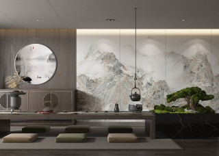 唐馳國(guó)風(fēng)新中式巖板背景墻