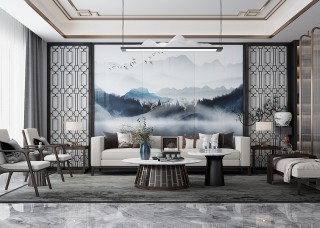 唐馳定制背景墻 新中式