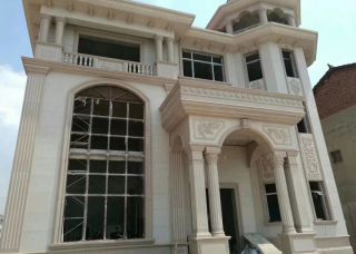 沉香米黃~別墅外墻干掛石材雕刻加工