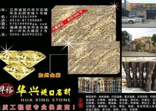 華裕(華興)石材主營(yíng)產(chǎn)品:加州金麻,加州金麻(黑底),紫點(diǎn)金麻,紫點(diǎn)金麻1,淺紫點(diǎn),美國(guó)白麻,美國(guó)灰麻,金山麻,世貿(mào)白,芭蕉黃1,安哥拉黑(黑水晶),安哥拉棕,安哥拉棕3,藍(lán)珍珠(11號(hào)礦),銀珠,綠星1,巴西金麻,海藍(lán)寶,印度蘭1,烏克蘭幻影藍(lán)企業(yè)地址:福建南安水頭鎮(zhèn)樸一村東大路區(qū)2號(hào)