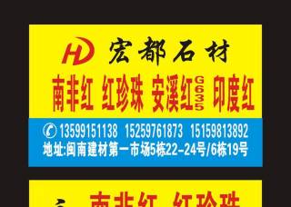 南安市宏都石材主營產(chǎn)品:南非紅,紅珍珠,印度紅(老礦大花),G635安溪紅,喬治亞灰3,芝麻灰(山東),新永定紅(光面),藍(lán)眼睛(伊朗),幻彩紫,幻彩紅4企業(yè)地址:福建泉州南安市G324(福昆線)中國·水頭中國石材城
